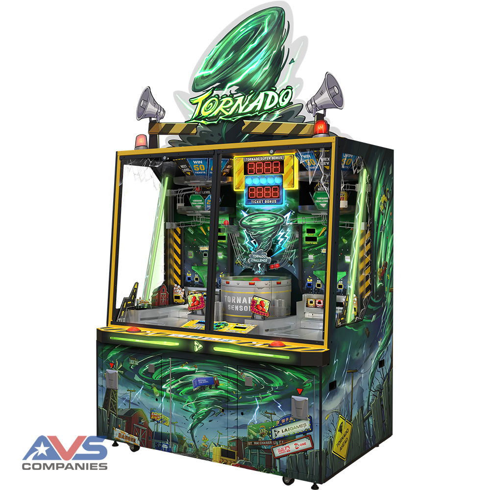 Tornado is an action-packed redemption game where players chase big wins through multiple gameplay avenues, including the thrilling Tornado Super Bonus and pre-built “coin-nado” coin towers that emerge and topple for massive ticket rewards. Easy to understand yet full of excitement, the game keeps players engaged with every spin, driving repeat plays and boosting revenue for operators.