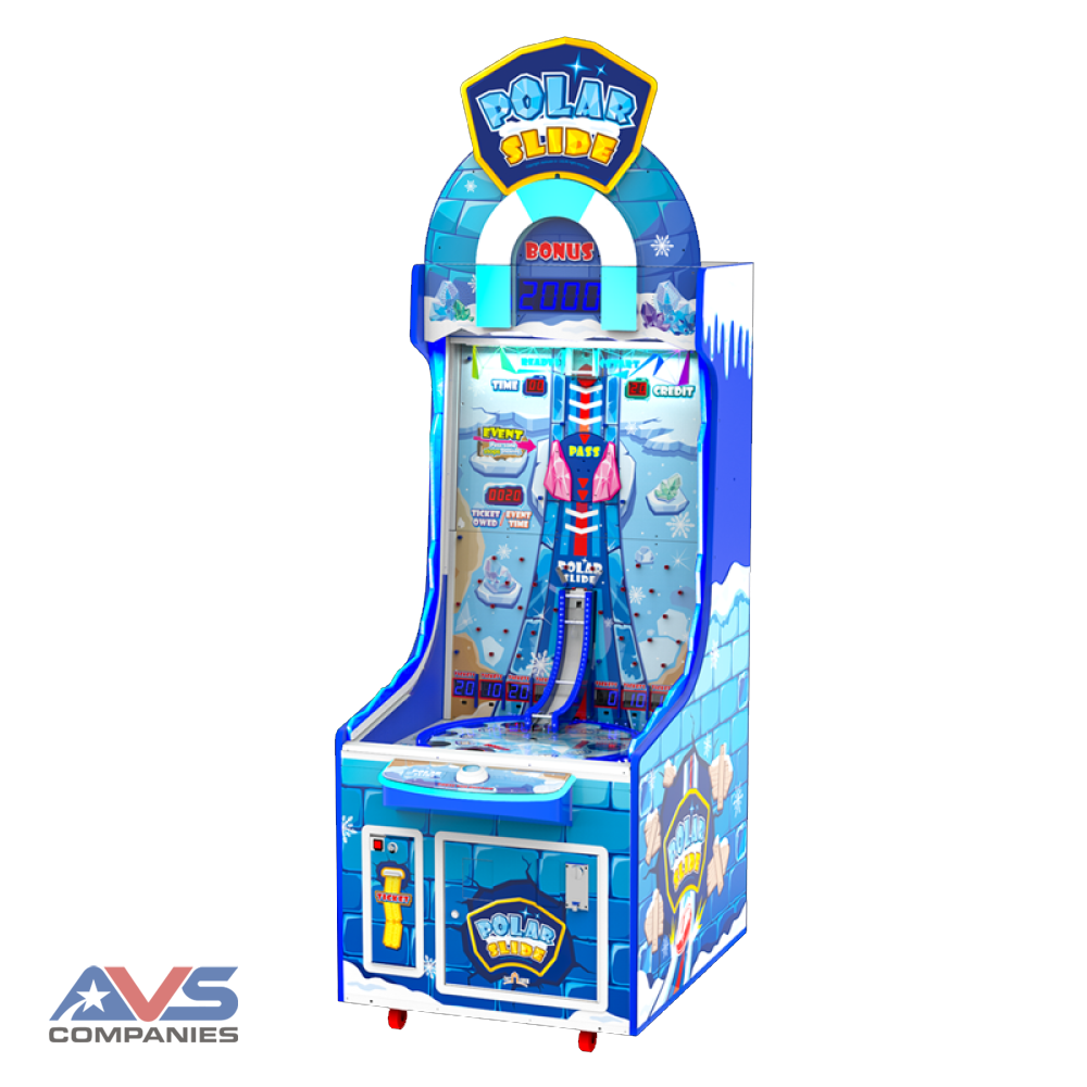 Polar Slide is a family friendly quick-play, redemption game, with a small footprint and great income potential. Players simply press the button at just the right time to let the puck go through the pass zone, doing so the puck slides down to the rotating wheel with higher ticket values and if done skilfully players could win the big-ticket bonus. With three bonus win zones and intuitive gameplay, Polar Slide encourages lots of repeat play.