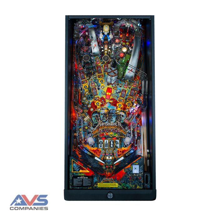 Metallica Remastered is updated with a full-color LCD display featuring all-new animations and live concert video footage. Stern’s modern Spike 2 electronics will power the gameplay experience.  Fans will enjoy expanded gameplay and improved presentation with 22 songs (8 more than the original) and expanded gameplay rules. Cabinet improvements include an Expression Lighting system and 2 all-new art packages by Metallica artist Rhys Cooper.  Players will experience the same great flow from the original Metallica playfield layout with geometry and mechanical improvements, new versions of gameplay toys, updated mechanical devices, and new UV lighting effects.